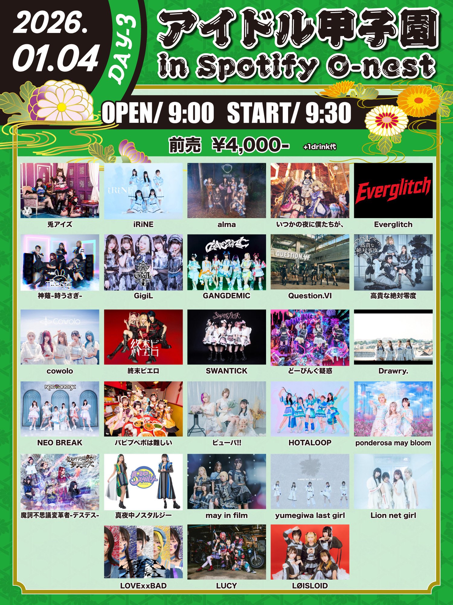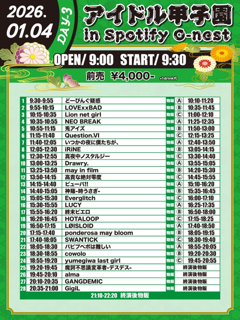 1/4(日)Spotify O-nest「アイドル甲子園 in Spotify O-nest」-DAY3-