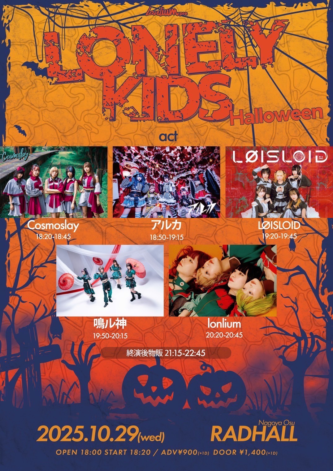10/29(水)名古屋RADHALL lonlium presents【LONELY KIDS名古屋Halloween編】