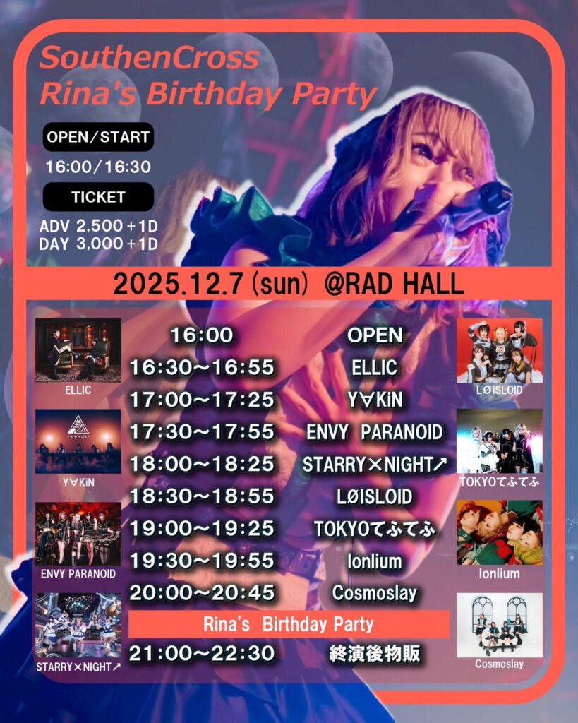 12/7(日)RADHALL「 Southern Cross~Rina’s Birthday Party~ 」