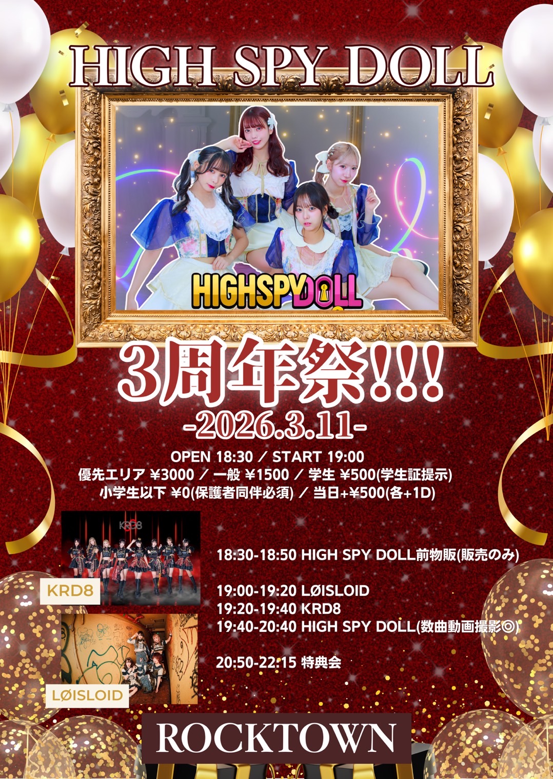 3/11(水)阿部野Rocktown「HIGH SPY DOLL3周年祭!!!」